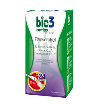 Antiox con resveratrol añade a los antioxidantes naturales del té los beneficios del resveratrol, ayudando a combatir los efectos del envejecimiento. También ayuda a fortalecer las defensas gracias a su alto contenido en lactobacilos (probióticos) y CLA (ácido linoleico conjugado). La acción conjunta de los antioxidantes del té verde y el té blanco, los polifenoles y los OPC (oligómeros procianidólicos) presentes en la uva, permite ralentizar el envejecimiento celular y combatir los efectos de los radicales libres. Asimismo, la combinación de lactobacilos y CLA fortalecerá en gran medida las defensas.
