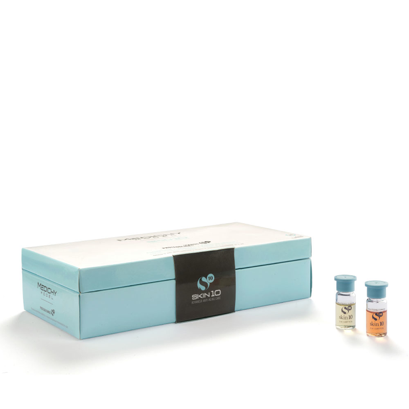 Medichy Skin 10 Proteoglicanos está indicado para pieles normales y secas. Si se aplica durante el día, su acción es hidratante, antioxidante, protector y dermotensor. Si se aplica por la noche, su acción es reafirmante, reparadora, oxigenante y antiarrugas. La ampolla dura abierta 24 horas debido a la oxidación de la Vitamina C; se recomienda utilizar una ampolla para dos aplicaciones. Contiene: