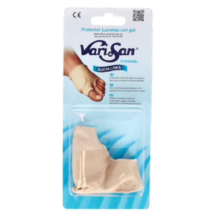 Este protector evita la fricción de los juanetes contra los zapatos gracias a su lámina de hidrogel. Varisan Protector Juanetes Hydrogel Talla Grande está diseñado para tus pies. Los juanetes pueden aparecer debido a una mala forma de esta parte del pie, lo cual provoca que se friccione más contra el zapato y se produzcan daños. Para evitar esta situación, los expertos de Varisan han creado este protector. Está diseñado para adaptarse perfectamente a la forma de tu pie y proteger la zona del juanete gracias a su lámina de hidrogel. Resulta hipoalergénico, así que no daña tu piel.