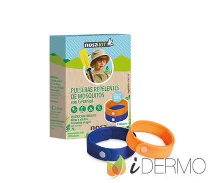 Las pulseras NOSAKIT son la mejor opción para estar protegido de los mosquitos al aire libre (deportes, camping, pesca, etc.). Están compuestas por geraniol, lo cual las hace ideales para toda la familia a partir de 3 años. Pueden utilizarse en la muñeca o en el tobillo, adaptándose al tamaño de quien las utilice. Cada pulsera es eficaz durante 180 horas. Cuando no se use, guárdela en un recipiente hermético para no consumir horas.
